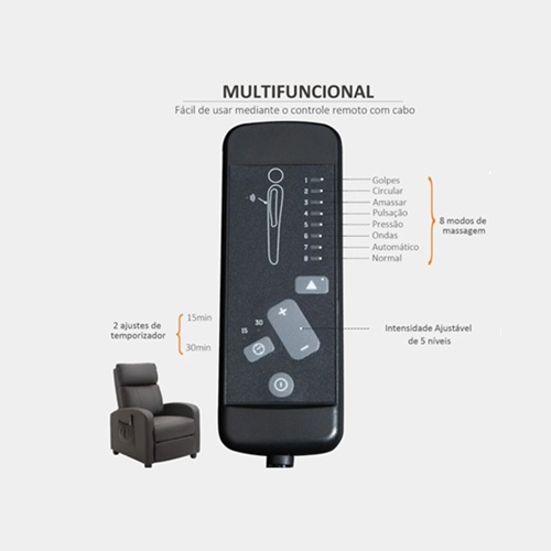 - Sistema de massagem com 2 pontos vibratórios nas costas